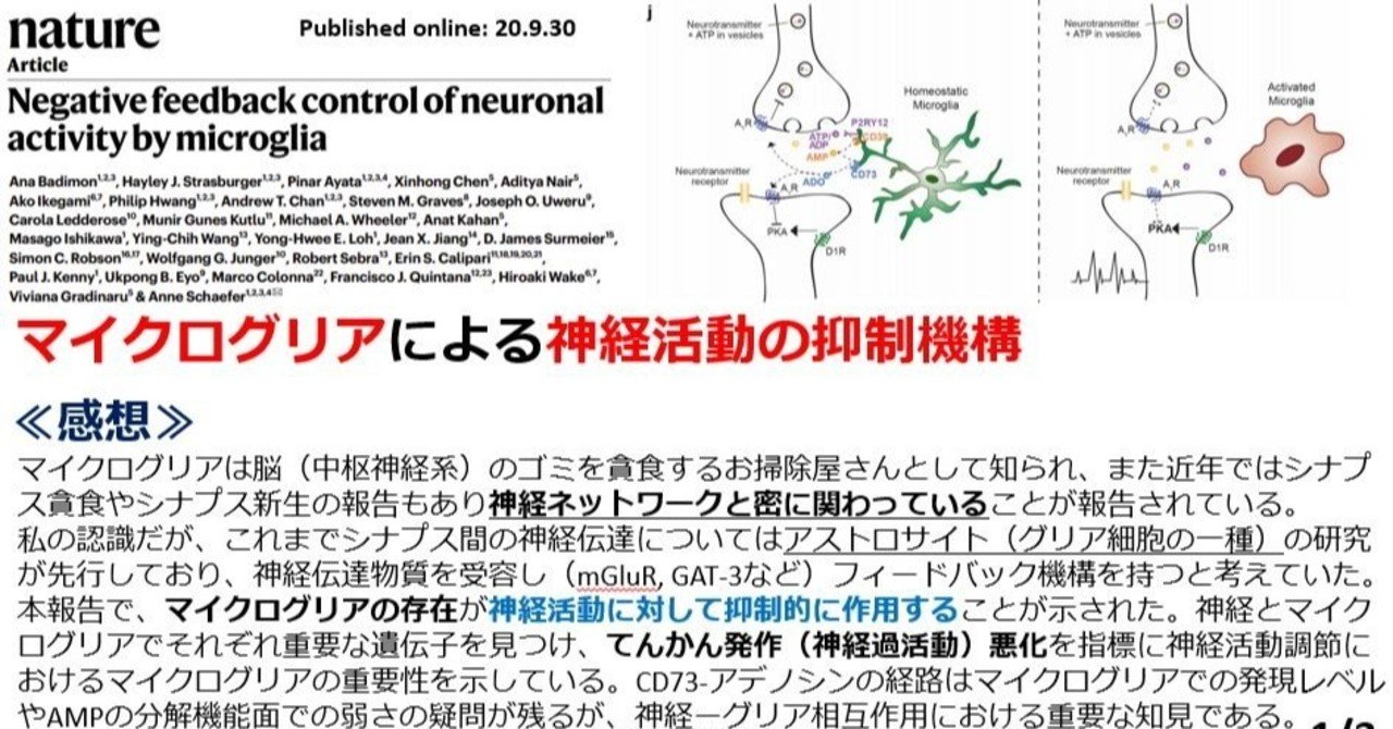 先生の論文紹介ブログに、グリア細胞がニューロンの活動を抑制している。
